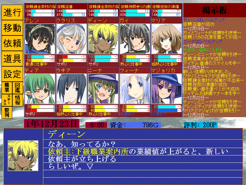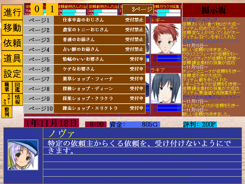 ギルド・マスターでは、依頼をこなしていくことで、依頼主の業績値が上昇していきます。