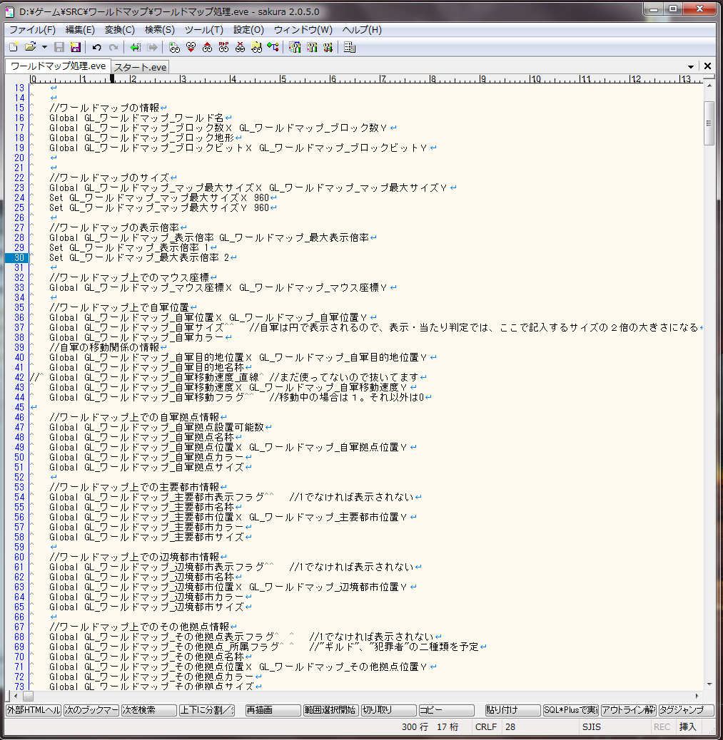 今作っているゲームのワールドマップ関連の変数です。