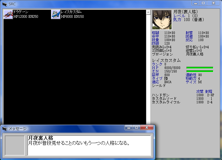 月夜のデータをSRCでまともに機能させるために、SRC本体のシステムと、『ドラグーン』で作った独自のシステムがそこらじゅうで激突する羽目に。