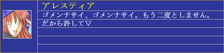 ゴメンナサイ、ゴメンナサイ、許してください。 ということで画面のキャラは、『伝説の錬金術師(?)アレスティア』です。 どの変が伝説なのかは、次回公開の試作版で明らかになります。