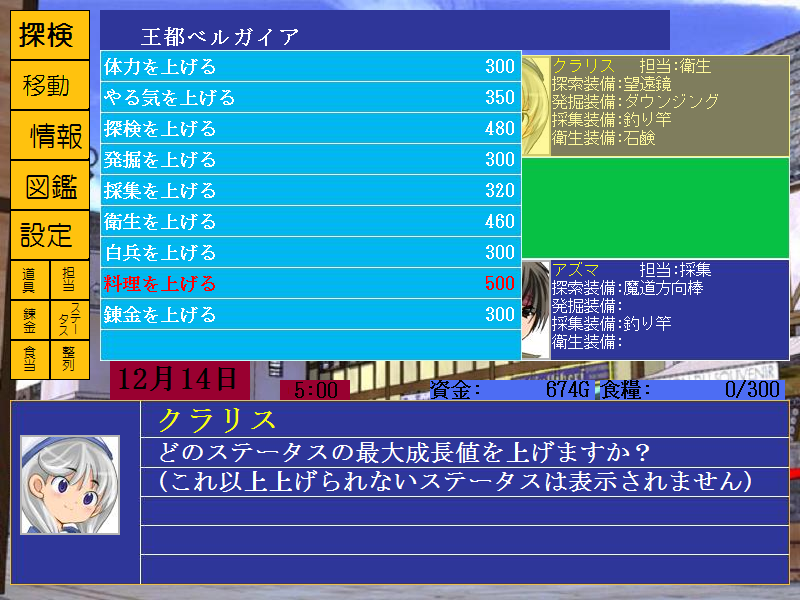 『クラリスの王国地図作成記』では、キャラクターごとにステータスの『成長限界値』が決まっていて、それ以上は成長できないようになっています。