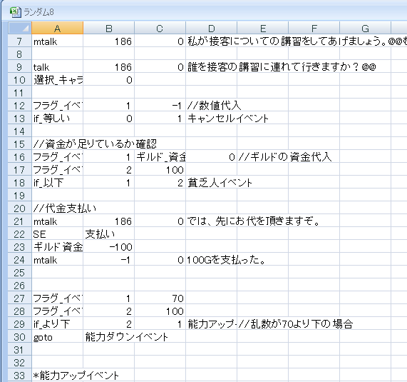 『クラリスの王国地図作成記』では、イベントデータをプログラム本体に入れていたため、プレーするユーザーが変更できませんでした。