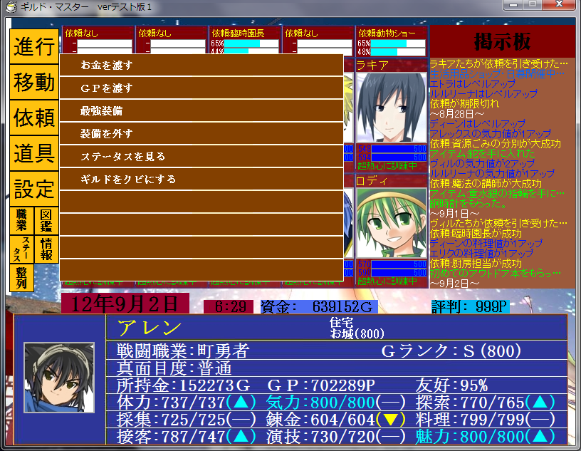ちなみに、今回は新しく付け加えた『最強装備』と『装備を外す』処理を紹介。