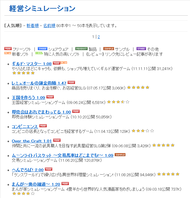 ある日ベクターにて、経営シュミレーションのジャンル(人気順)を見ていると、ギルド・マスターが一番上に来ていました。