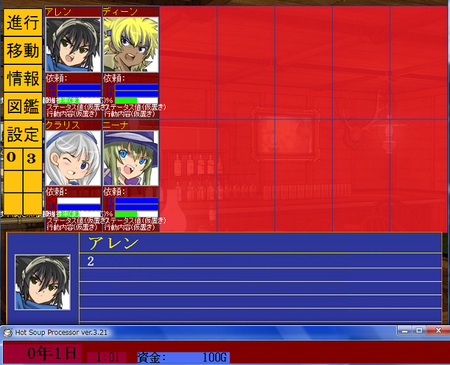 少し古いものですが、次回作『ギルド物語(仮題)』のメイン画面です。